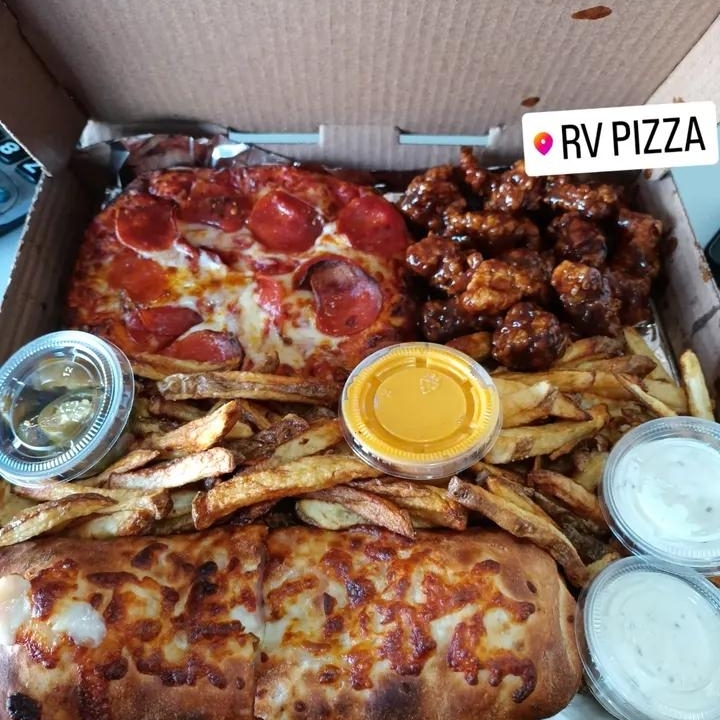 pizza personal de peperoni+ boneles salsa a elegir papas fritas 1 ranch y 2 quesos.