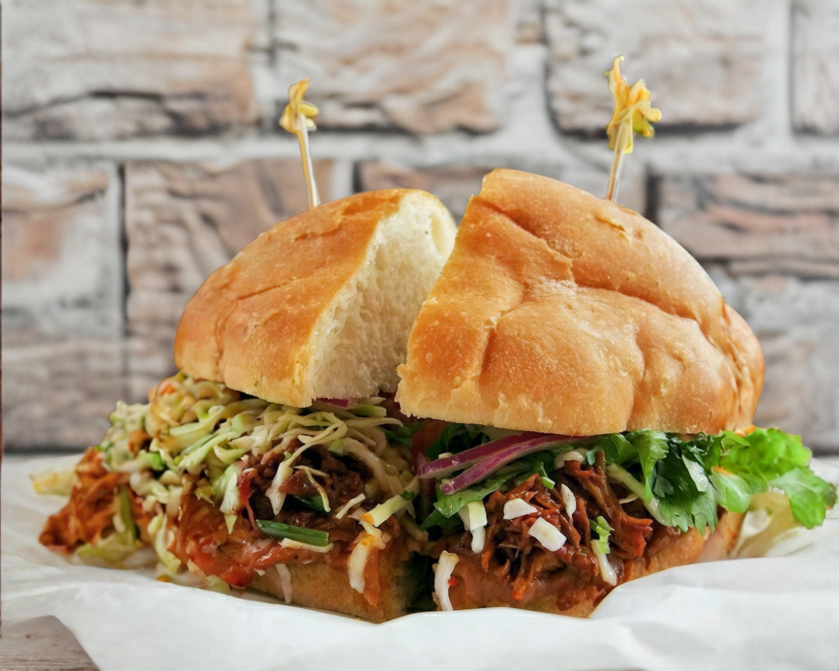 Carne deshebrada con verdura guisada en pan de torta
