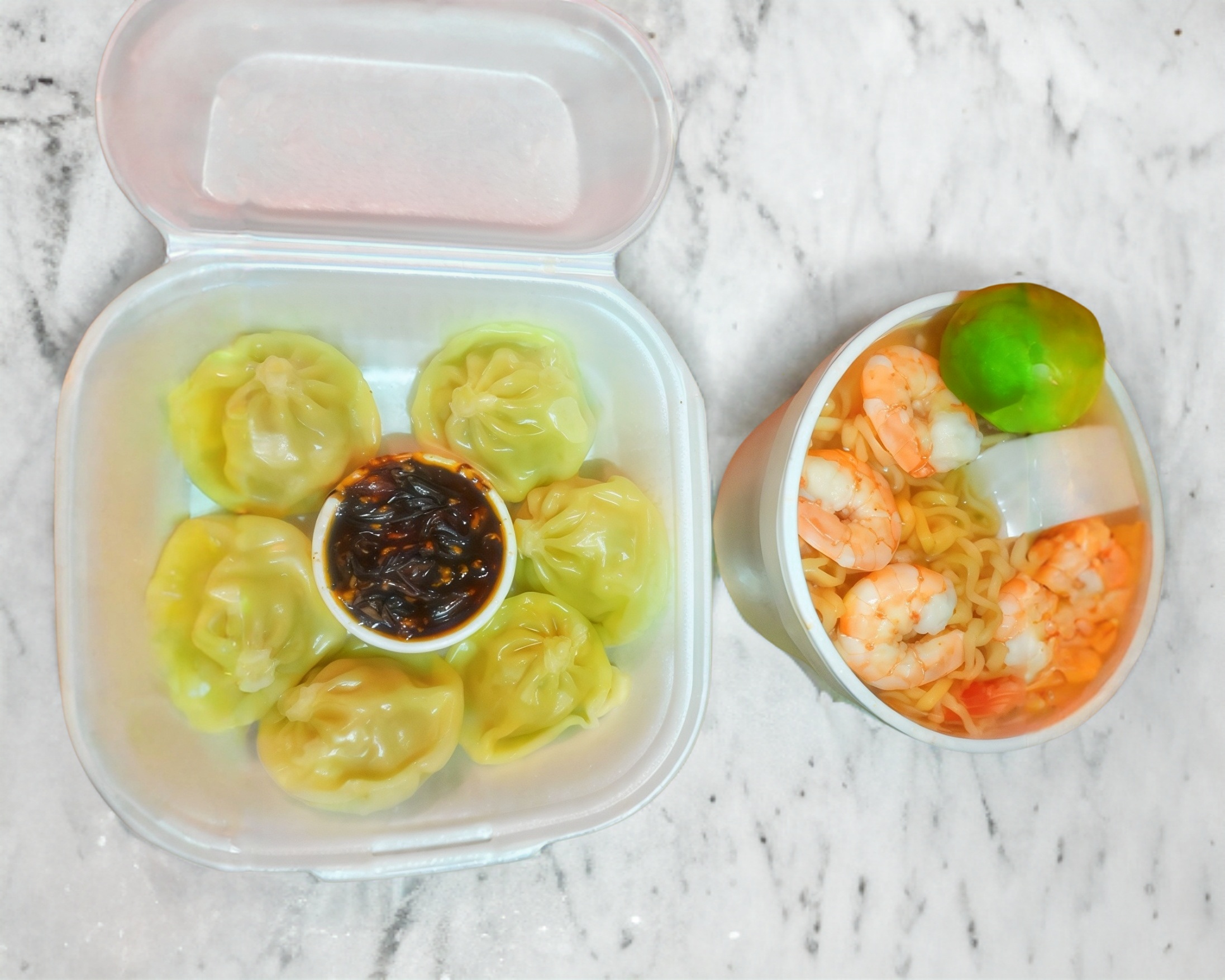 Sopa ramen con camarones*1 + Dumplings de pollo al vapor orden 6pzs*1