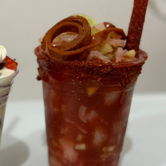 Raspado a base de una mezcla de mieles naturales, sabor picoso y dulce, con fruta natural, gomitas preparadas y chacatrozo