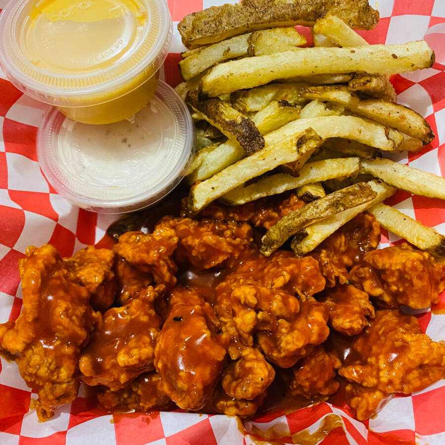 250 gr boneles de tu salsa favorita, acompañados de papas fritas