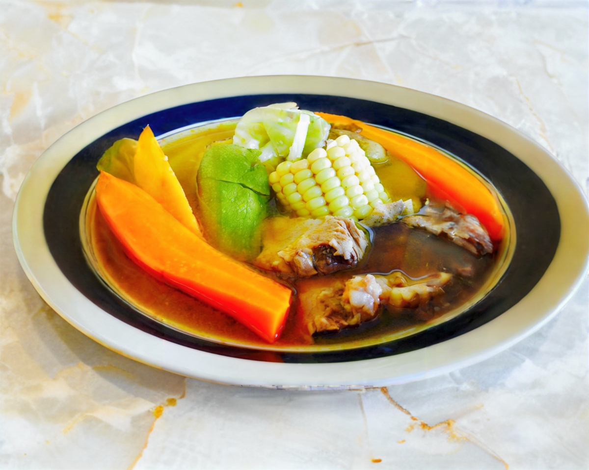 Caldo de res ( 32 onzas) con arroz tortillas de maíz ó harina ( 3 piezas) y agua de Jamaica de 20 onzas..