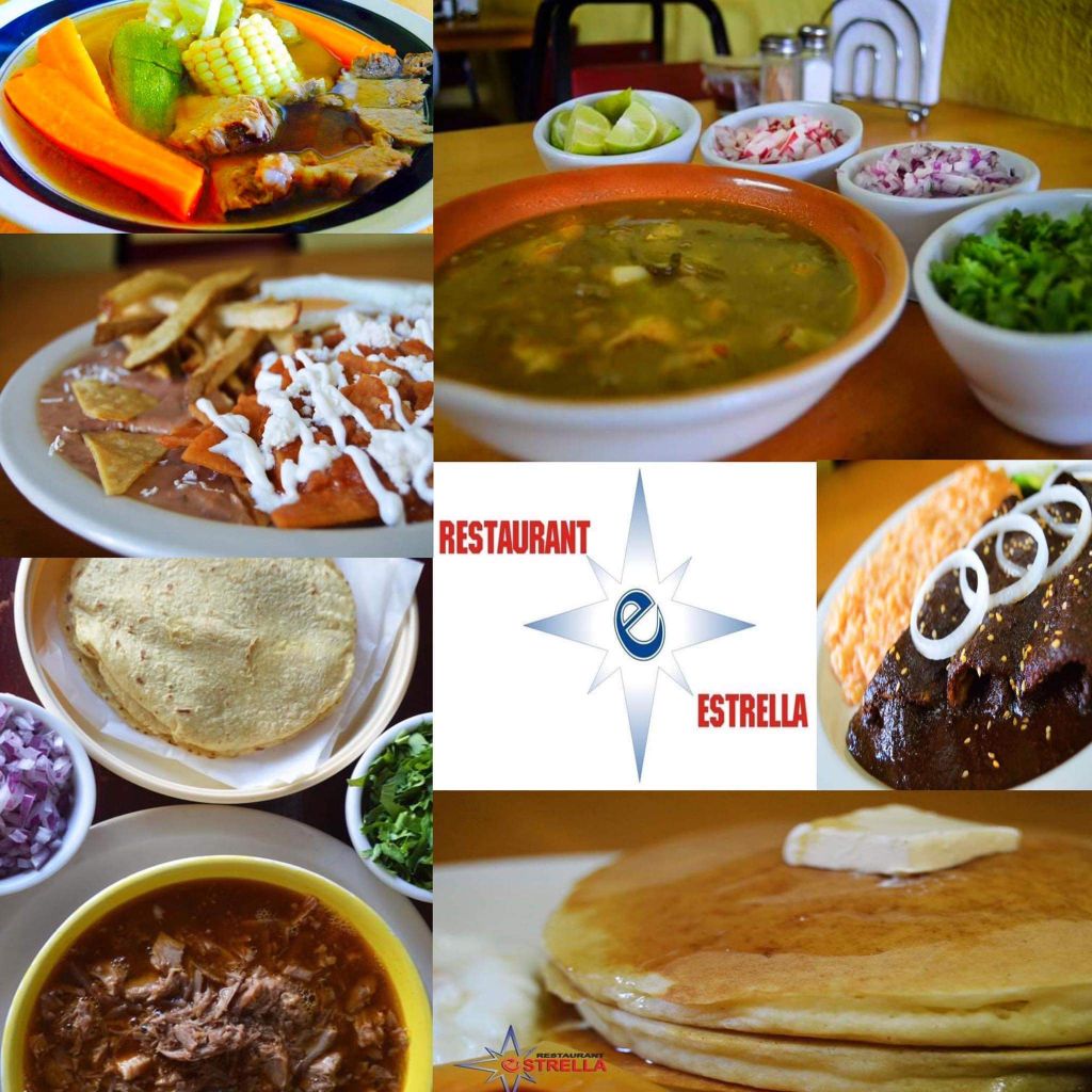Burrito estrella de machaca, bistec, pollo con mole, rajas con pollo, en una gran tortilla.
