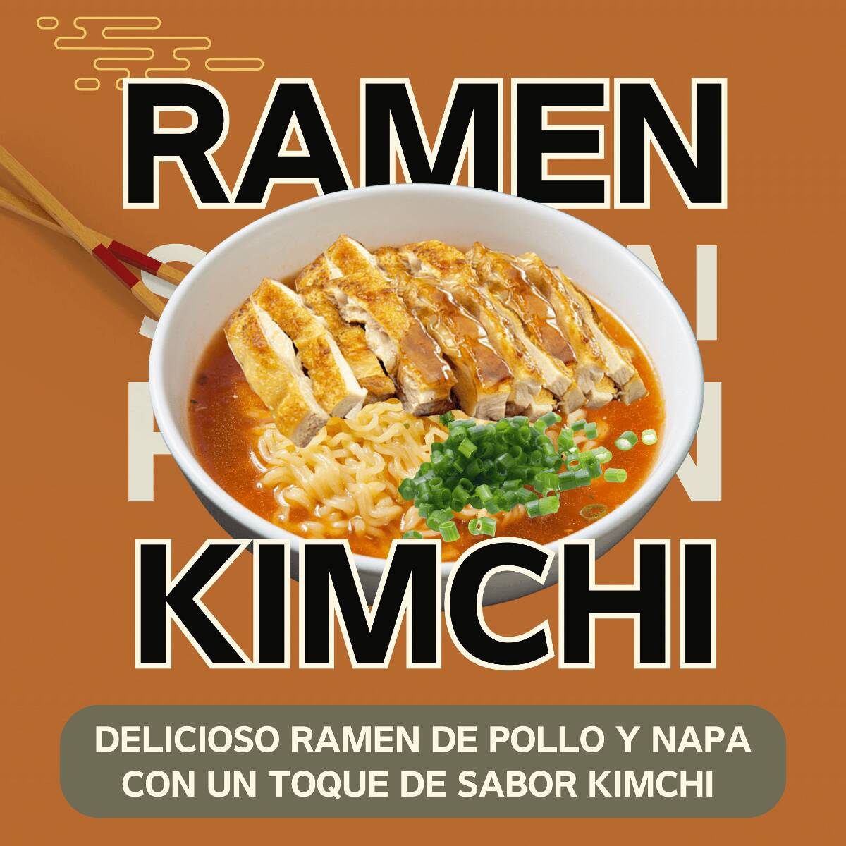 Delicioso ramen de pollo y napa con un toque de sabor kimchi.