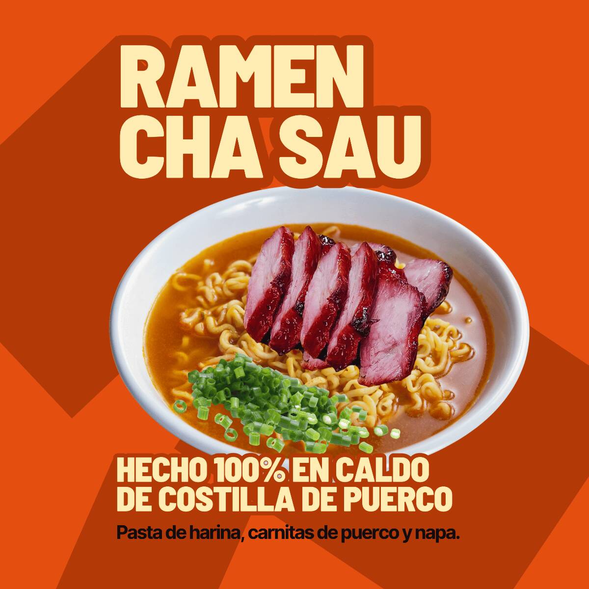 Pasta de harina, carnitas de puerco y napa en caldo 100% hecho con costilla de puerco.