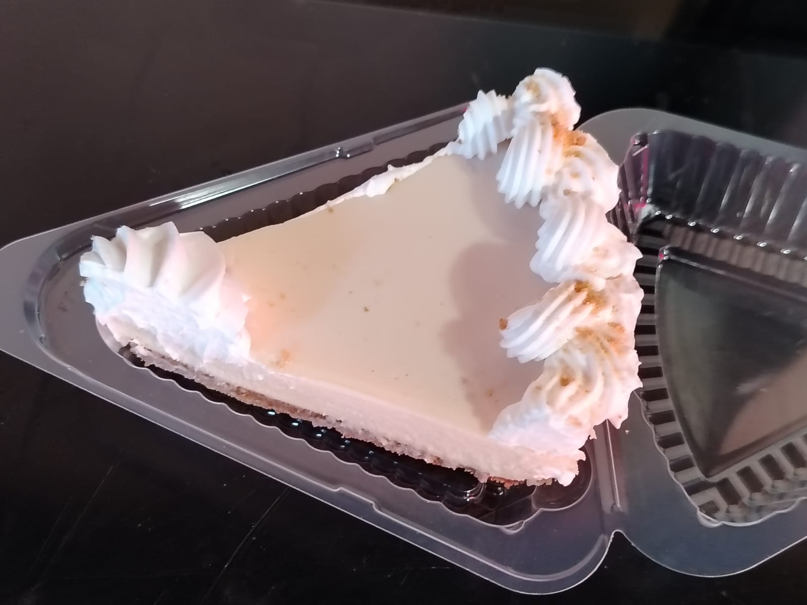 Tarta fría con base de galleta, relleno de limón y cubierta de merengue.