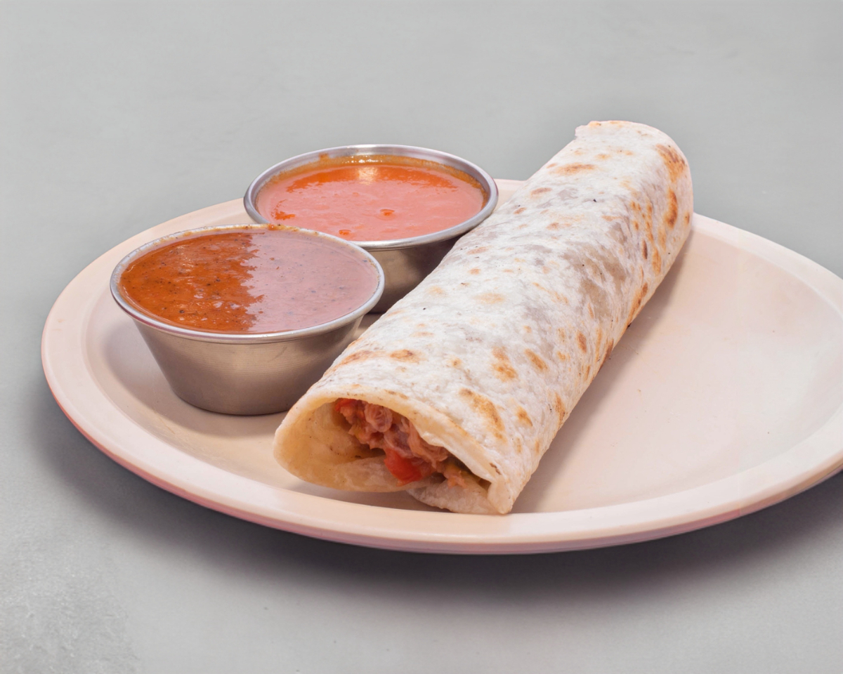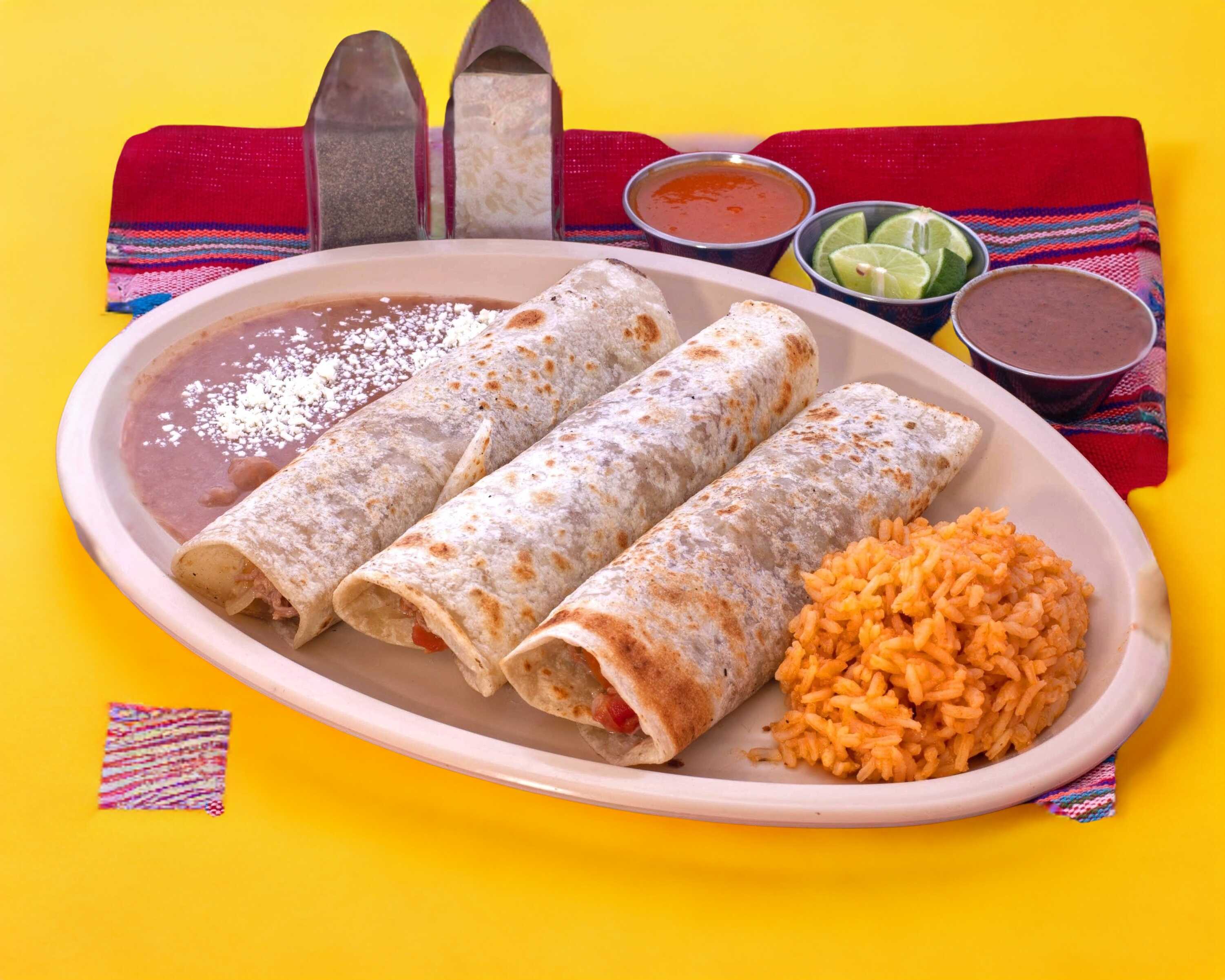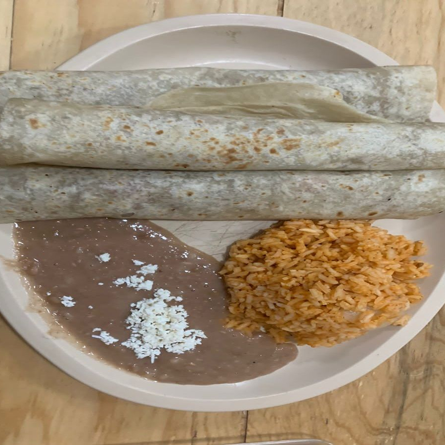 3 Burritos de machaca, Acompañandos con lechuga y frijol.