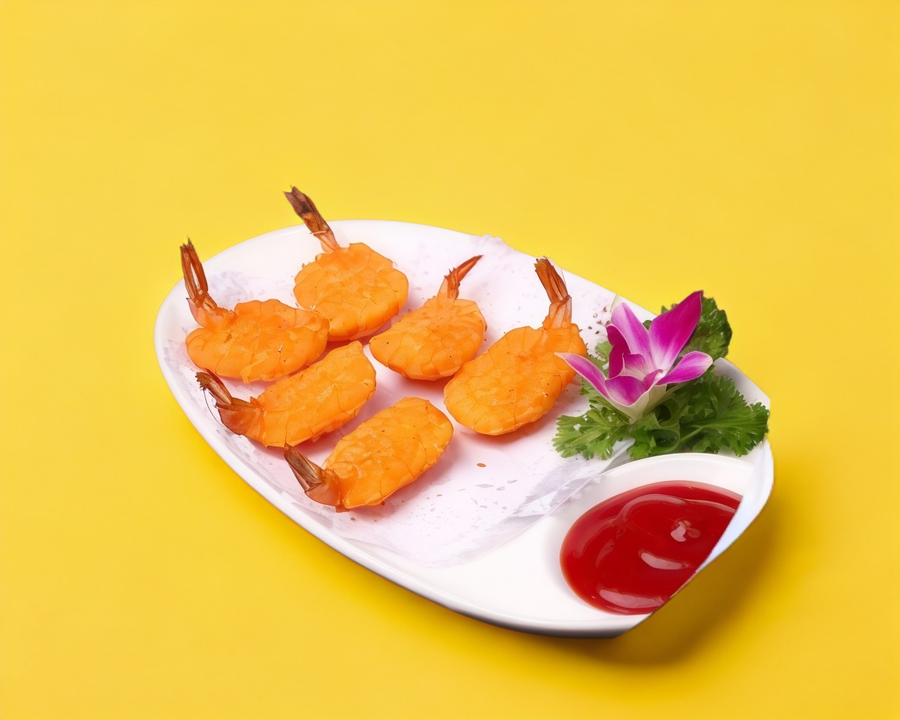 1 pz Camarones cubiertos con empanizado dorado y crujiente, ideales para botanear.