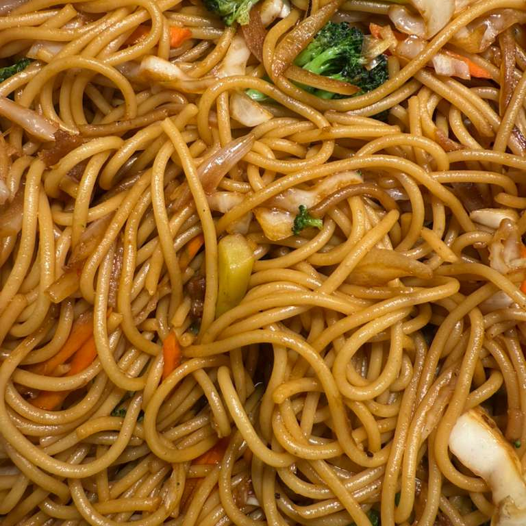 Fideos fritos al estilo oriental, con textura crujiente y sabor delicioso.