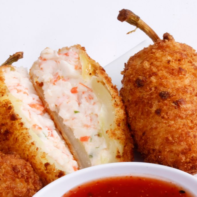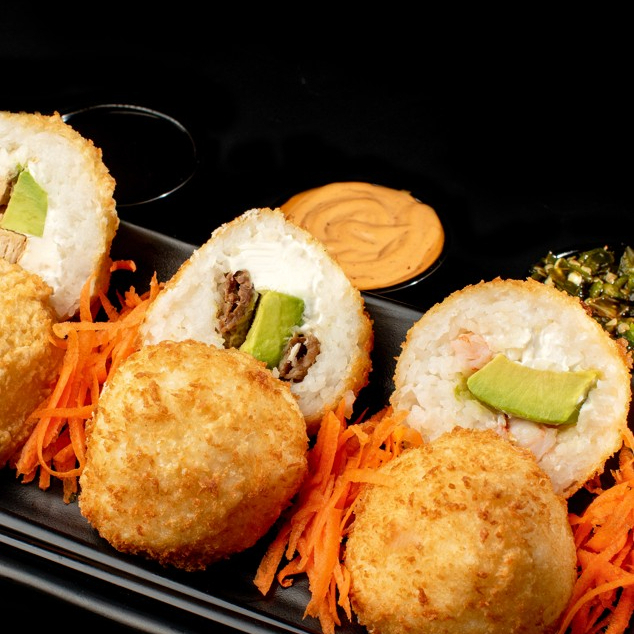 Tres bolas de arroz rellenas de aguacate, queso philadelphia y tu elección de proteína: pollo, res, surimi o camarón. una opción perfecta para compartir o disfrutar como un festín individual de sushi.
