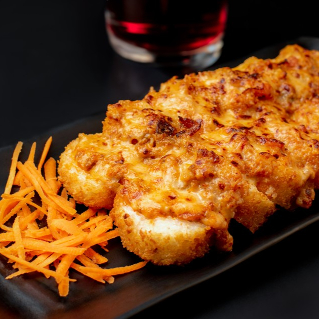 Chiles caribe empanizados rellenos de tocino y una exquisita mezcla de quesos, gratinados a la perfección y acompañados de una jugosa proteína a elección. una explosión de sabores y texturas.