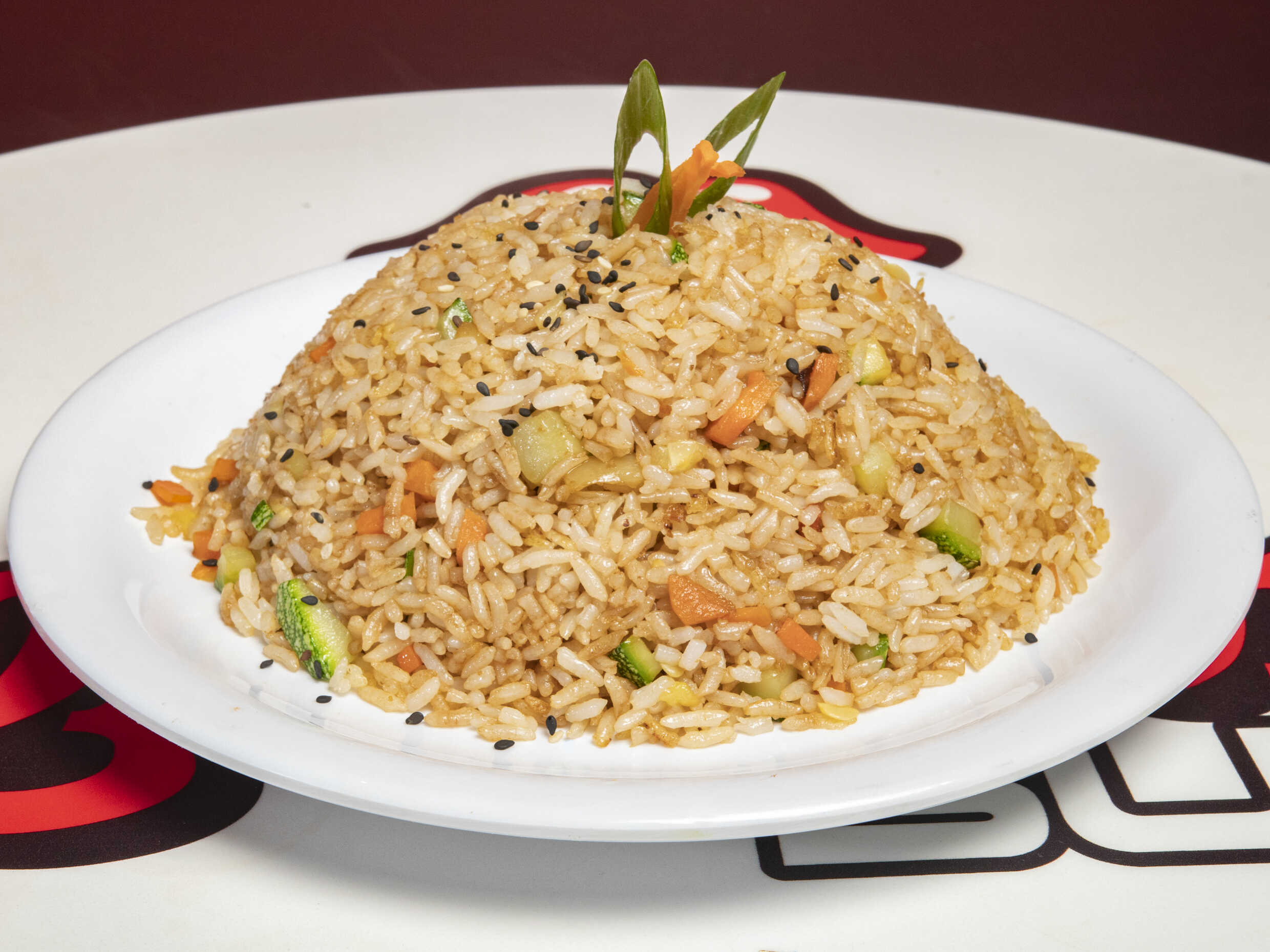 Arroz frito con verduras (zanahoria, cebollín, calabaza).