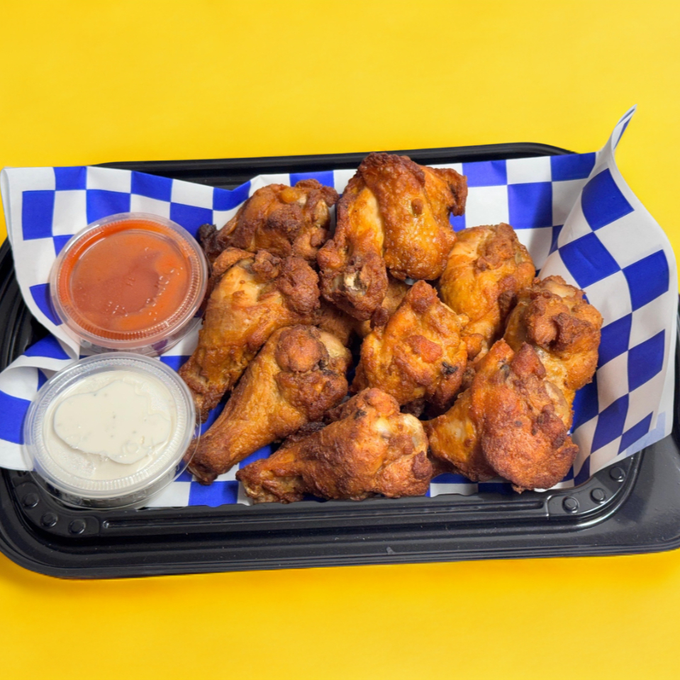 Orden de 10 pzas de alitas acompañada con apio, zanahoria y un aderezo ranch.