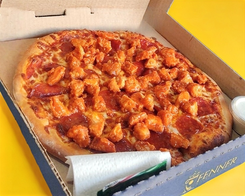 familiar de 16 pulgadas cortada en 12 pedazos con porcion de boneles + 2 ranch