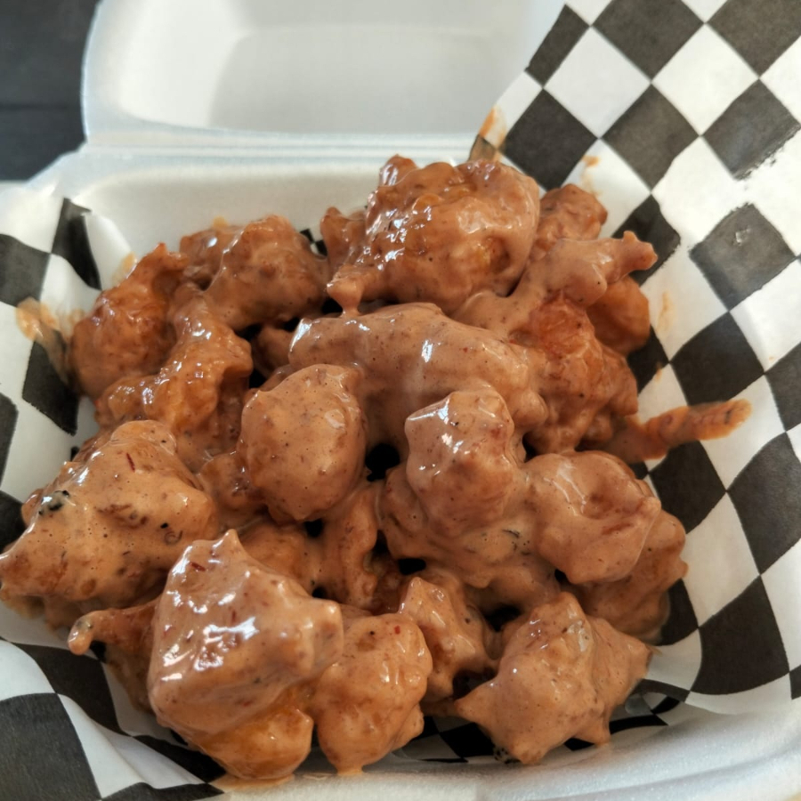 Pollo con empanizado especial bañados con salsa chipotle (Porción Personal).