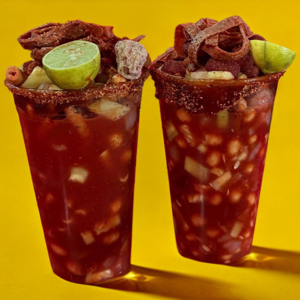 tostitos verdes o morados, cavcahuate, chaca chaca, pepino, cuerito, clamato.