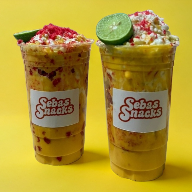 coctel de elote tradicional con mayonesa, queso cotija, crema, queso amarillo.