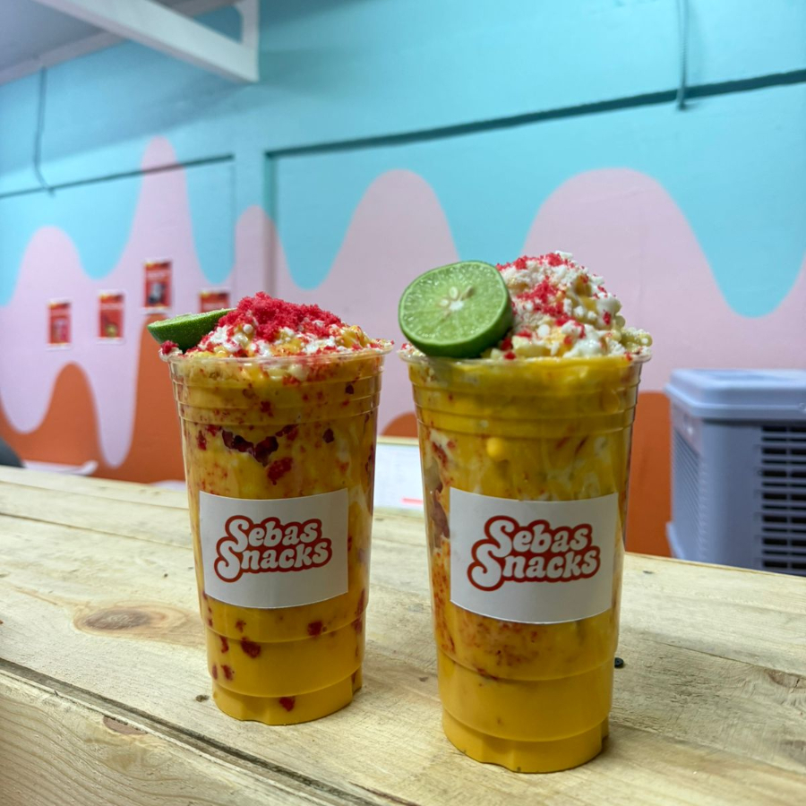cheetos locos , clamato, pepino, cuerito, chacachaca , cacahuate , salsas