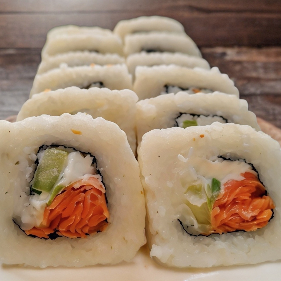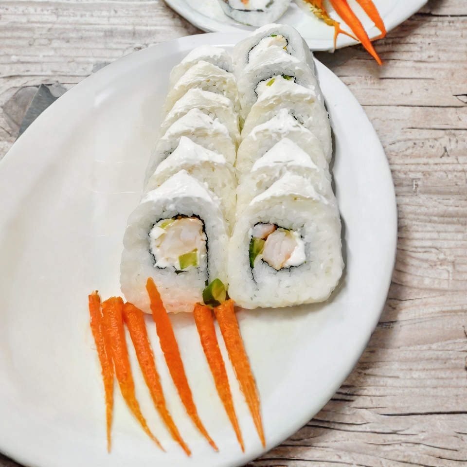 Alga, philadelphia, aguacate, pepino y zanahoria rallada.