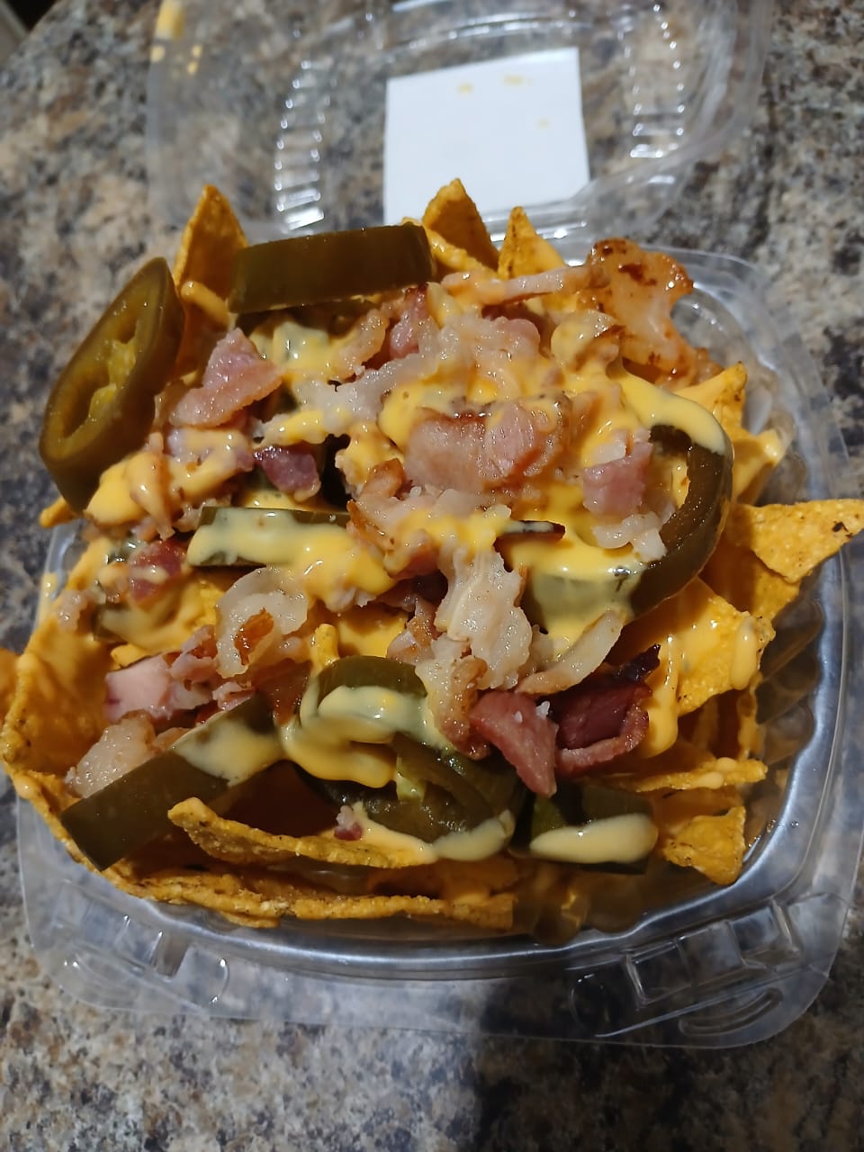 nachos tocino queso y chile jalapeño