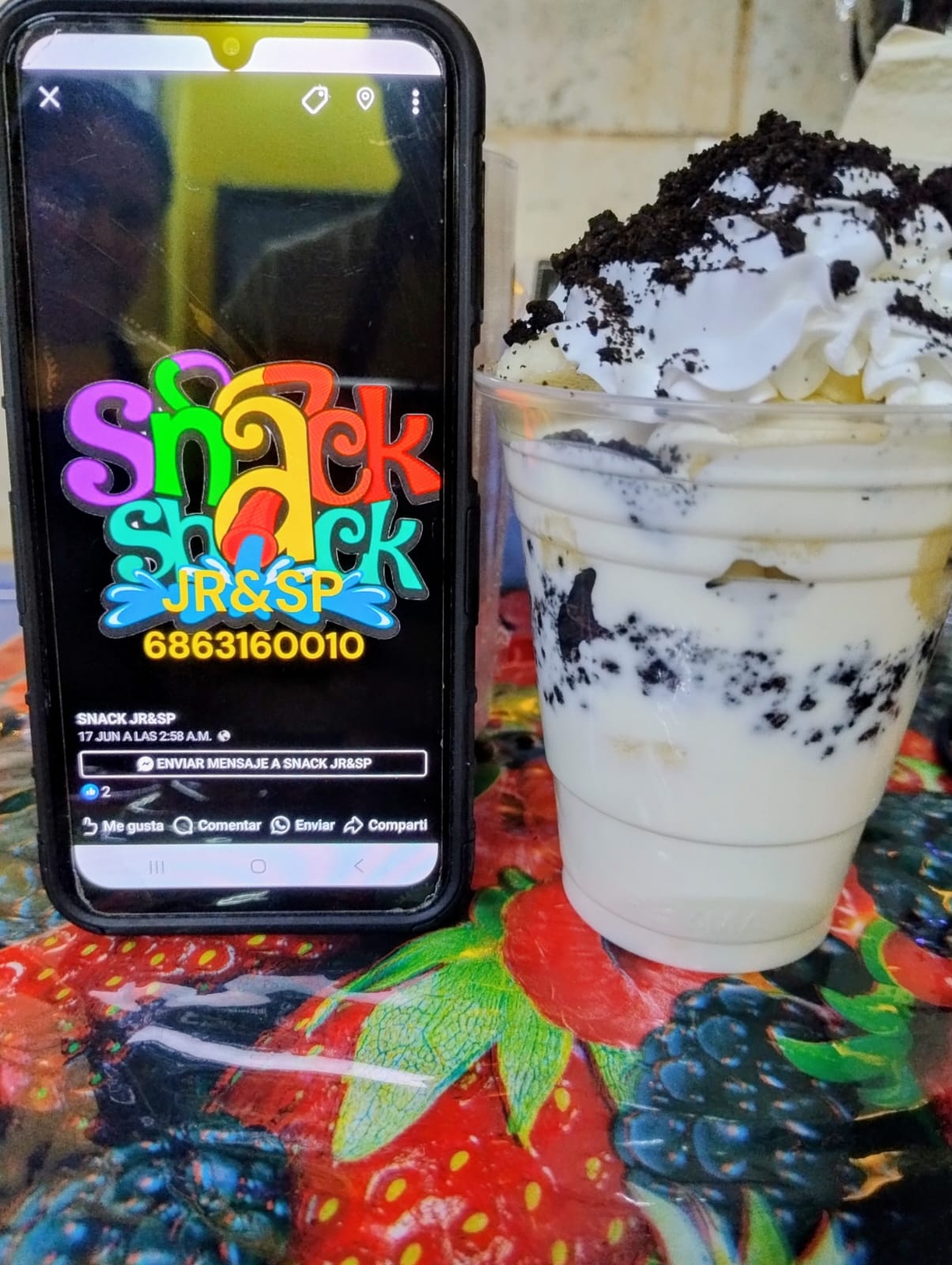 Platano con crema y oreo 12 onz