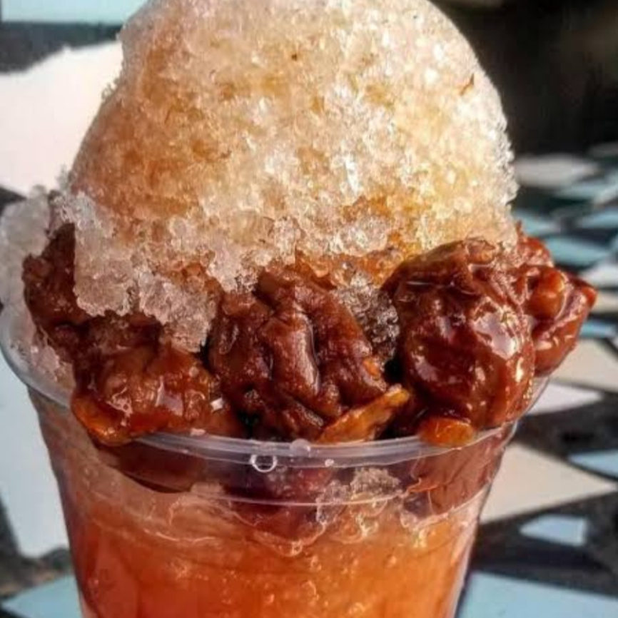 Cacahuates preparados con chamoy, salsa picante, limón y gomitas.