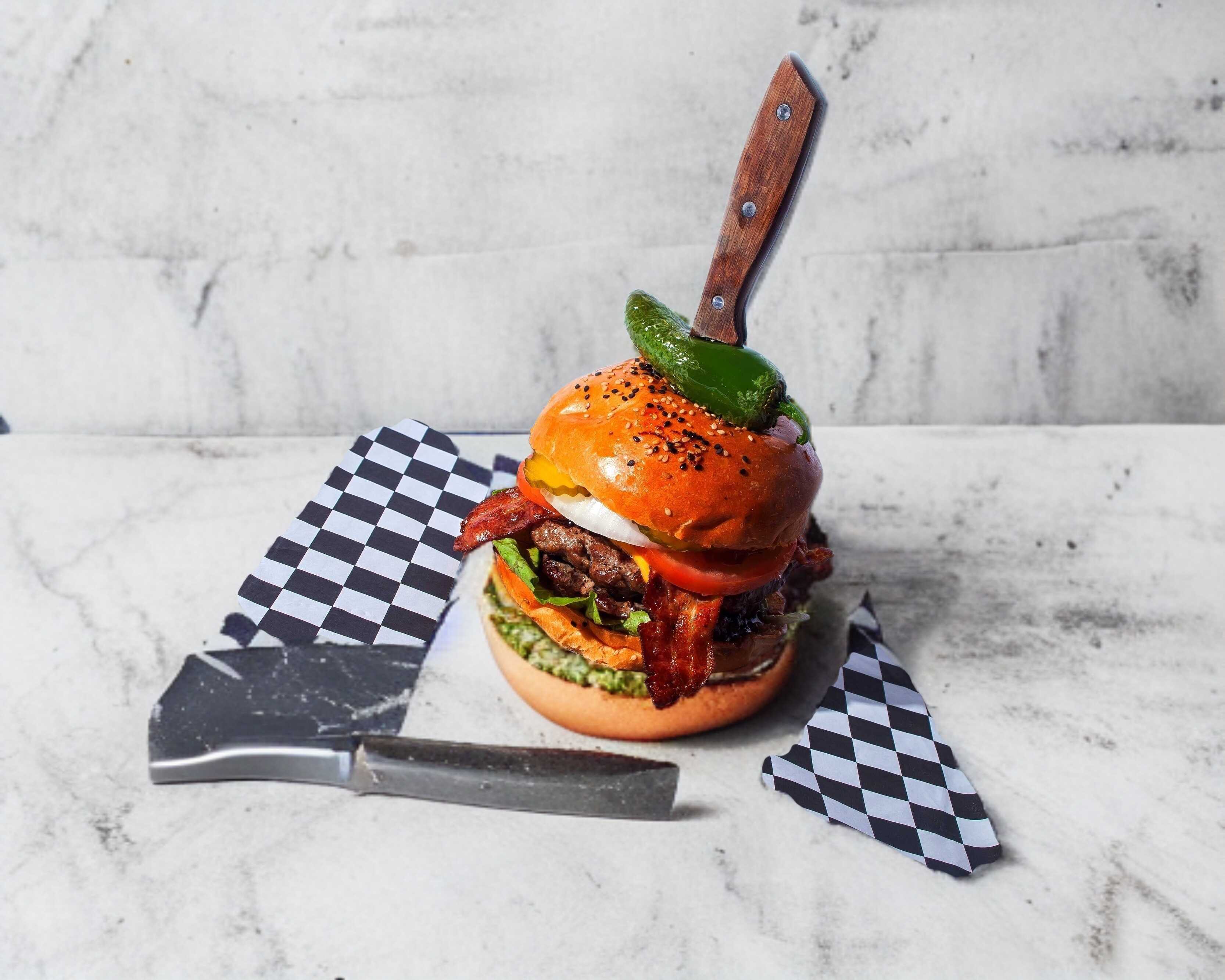 180gr de carne 100% de res, pan artesanal, lechuga hidroponica, tomate, cebolla, pepinillos, crujiente tocino, aderezo de la casa!! Acompañado con jalapeño frito!!