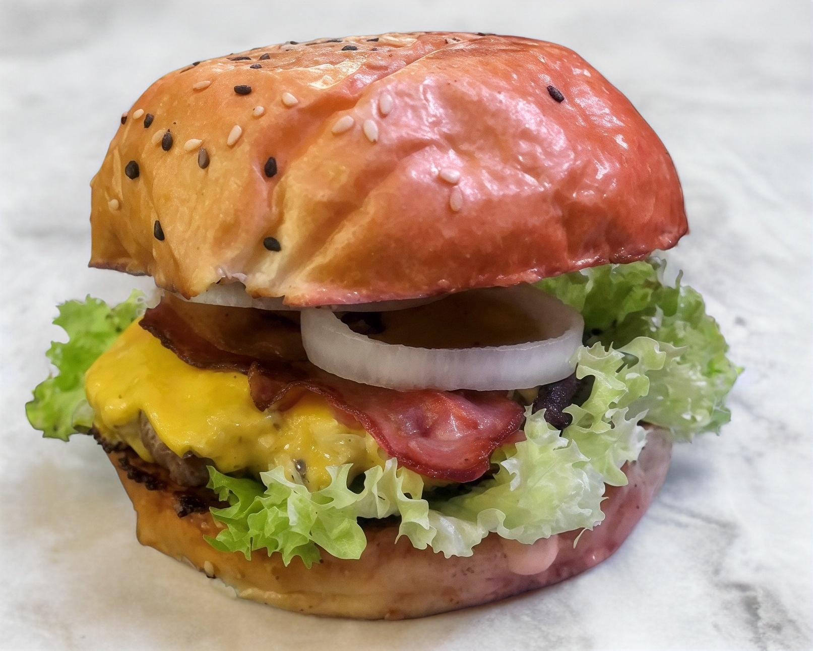 180 gr de carne 100% res, Pan artesanal, crujiente tocino, queso derretido, pepinillos, aritos de cebolla, aderezo BBQ.