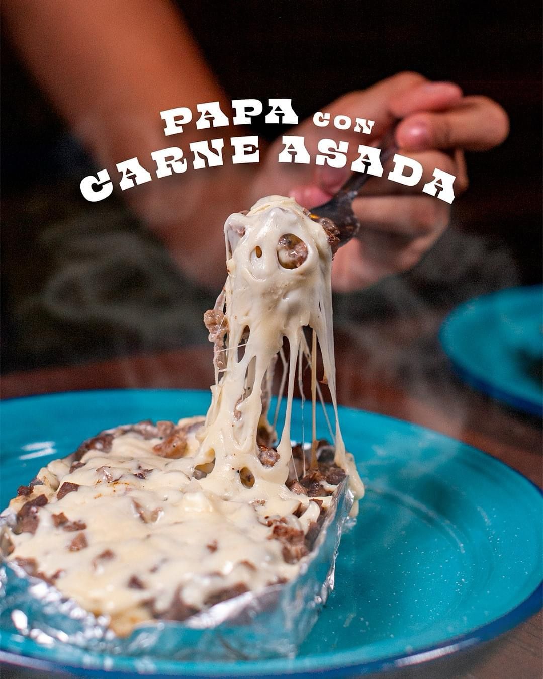 Incluye: Carne Asada, mantequilla, queso mozarella, crema.
