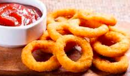 Orden de aros de cebolla empanizados con aderezo ranch.