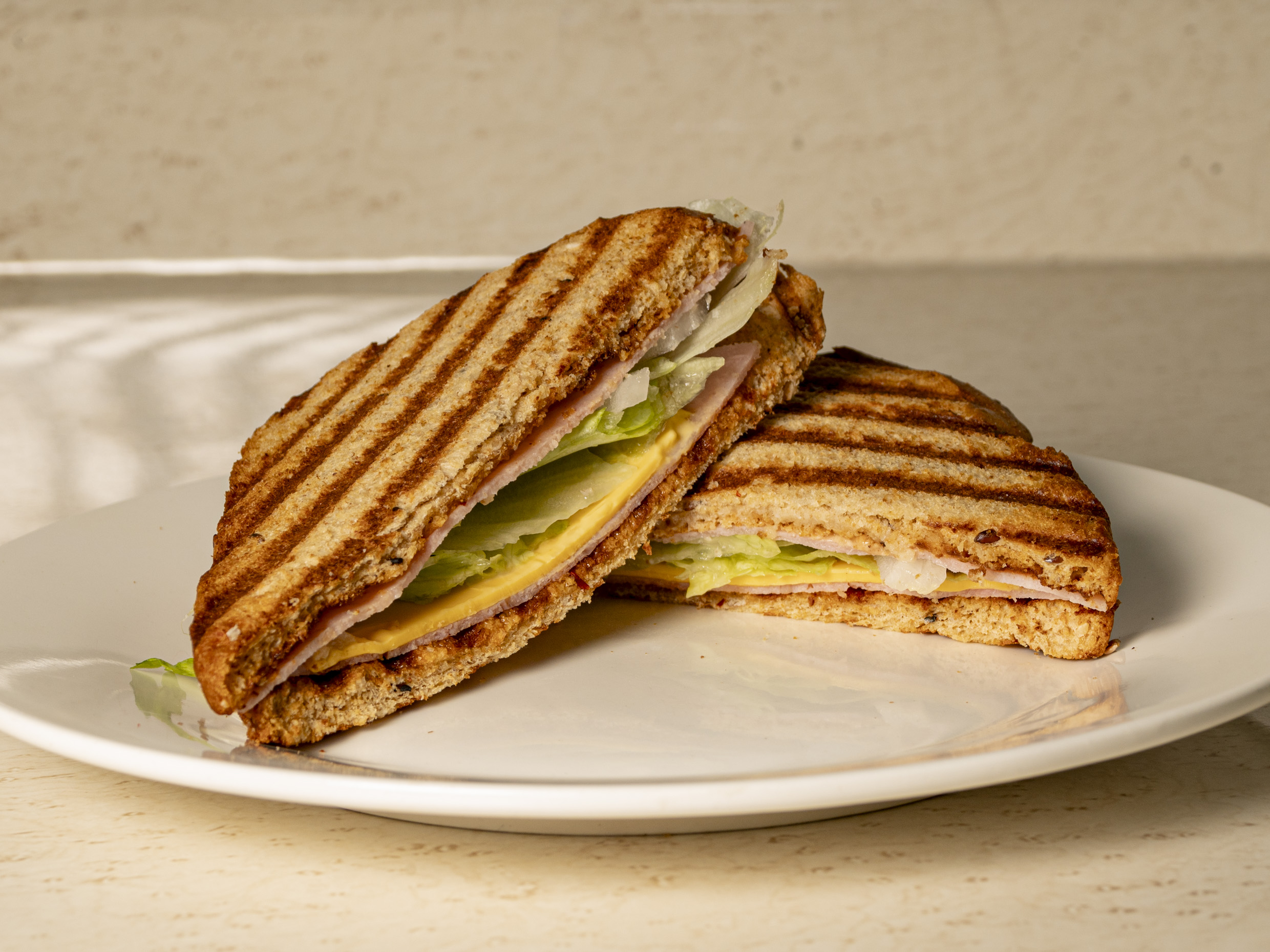 2 panes multigrano, jamón, queso, lechuga, tomate y cebolla.