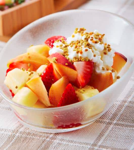 Con pechuga de pollo a la parrilla, lechuga romana, espinaca, mango, panela, nuez caramelizada y tomate.