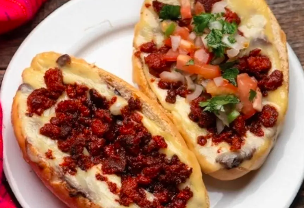 Carne asada gratinada ,lechuga,tomate,cebolla,aguacate y mayonesa/chipotle