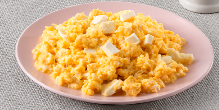 3 huevos revueltos a elegir, acompañados con frijol y papas.