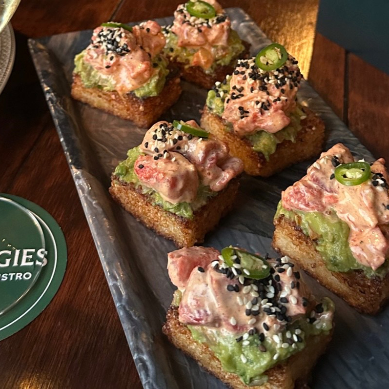 Autentico arroz Japones, Sofrito, Mousse de aguacate, Atun con spicy sriracha mayo y un toque de ajonjoli y serrano.