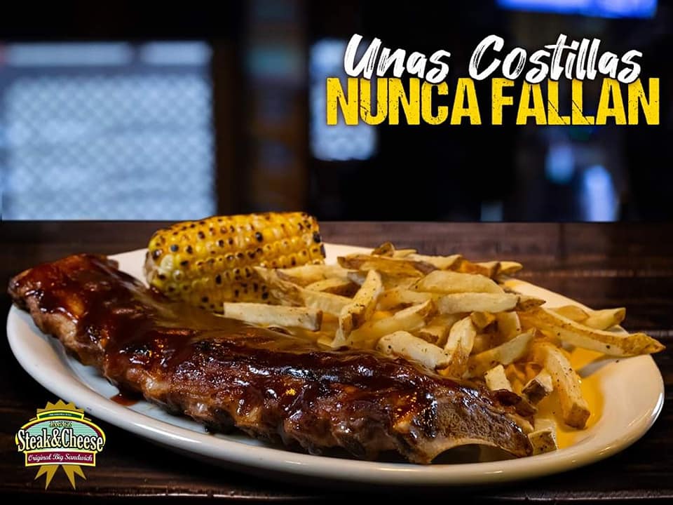 Deliciosas costillas de puerco estilo bbq acompañadas de papas fritas