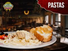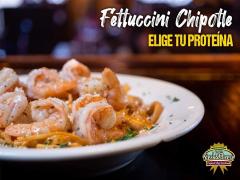 Deliciosa pasta fettuccine servida con la deliciosa crema alfredo o chipotle + Pan y Bebida