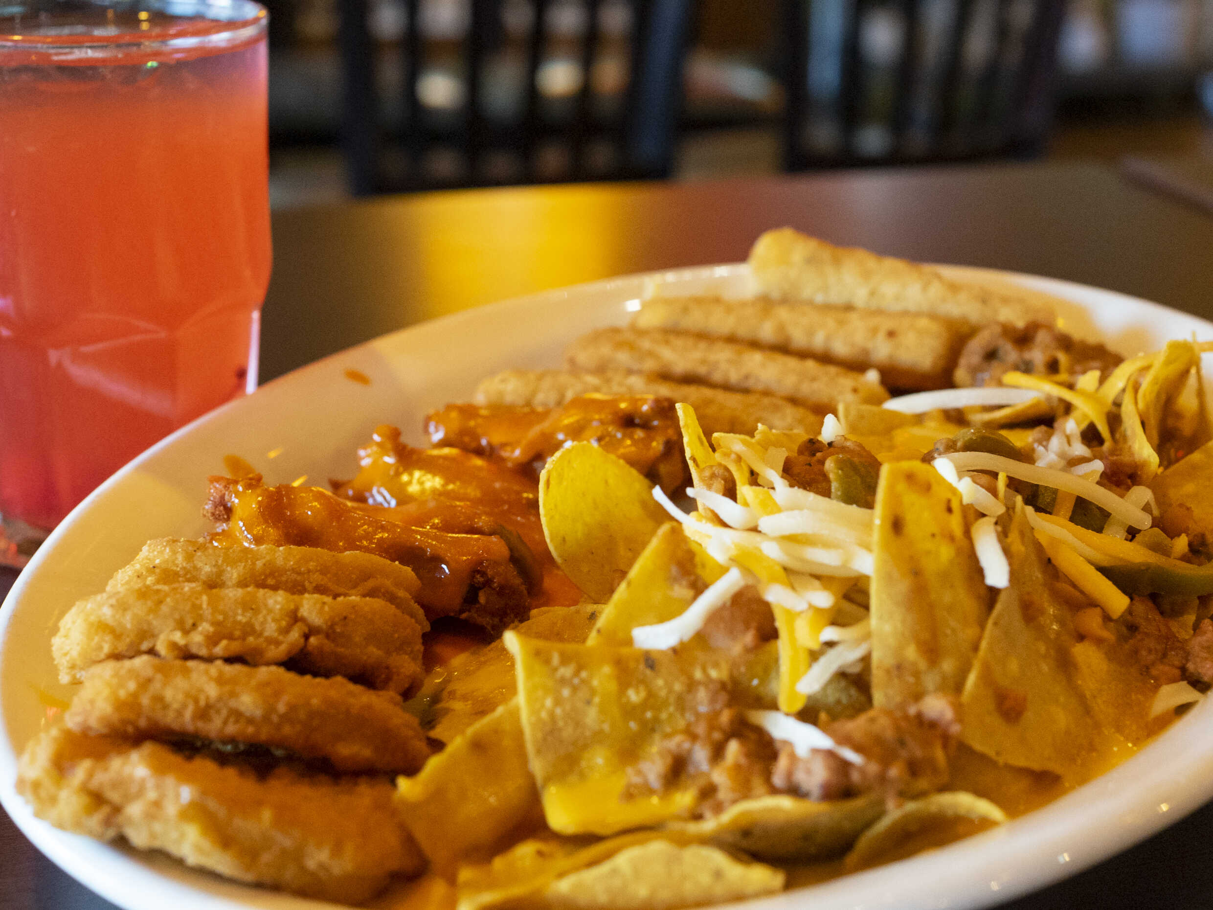 Nachos Chili , alitas buffalo nuggets palitos de queso mozarella a degustar con salsas diferentes