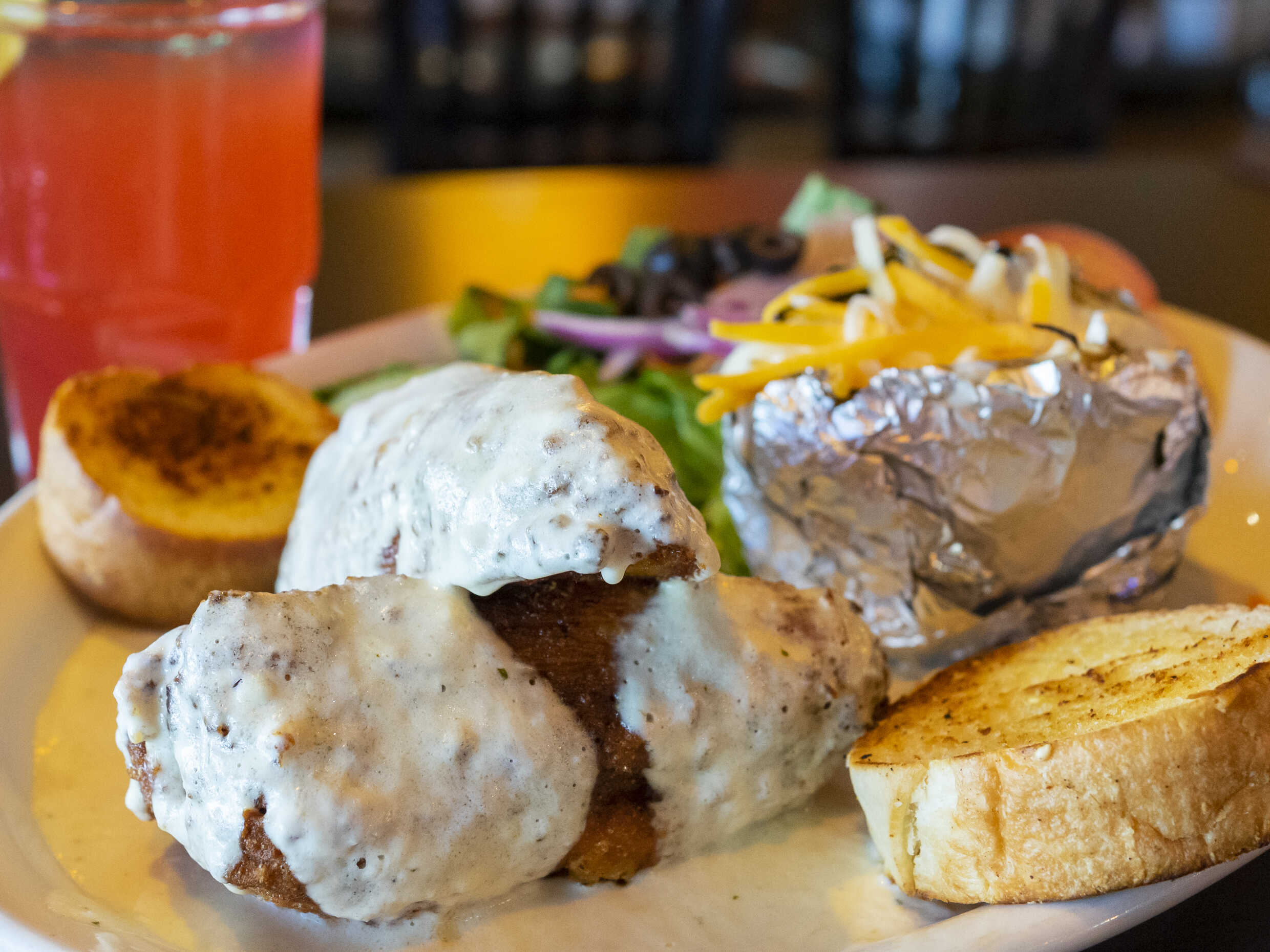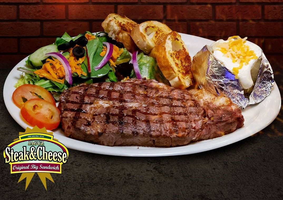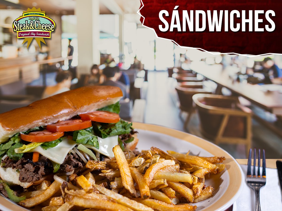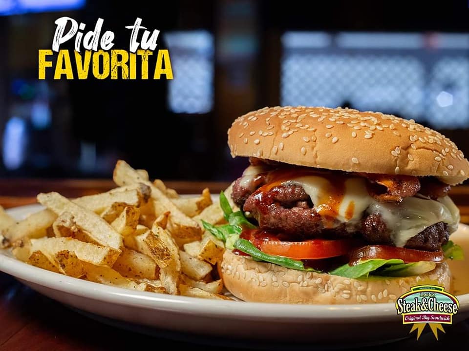 Carne o pollo aderezada con 3 quesos (cheddar, mozzarella y suizo) al puro estilo Neoyorquino, cebolla, pimiento y champiñones. Incluye papas o ensalada de verduras.