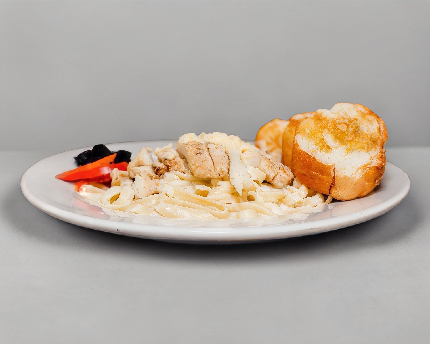 Deliciosa pasta fettuccine servida con la deliciosa crema alfredo o chipotle + papas y bebida