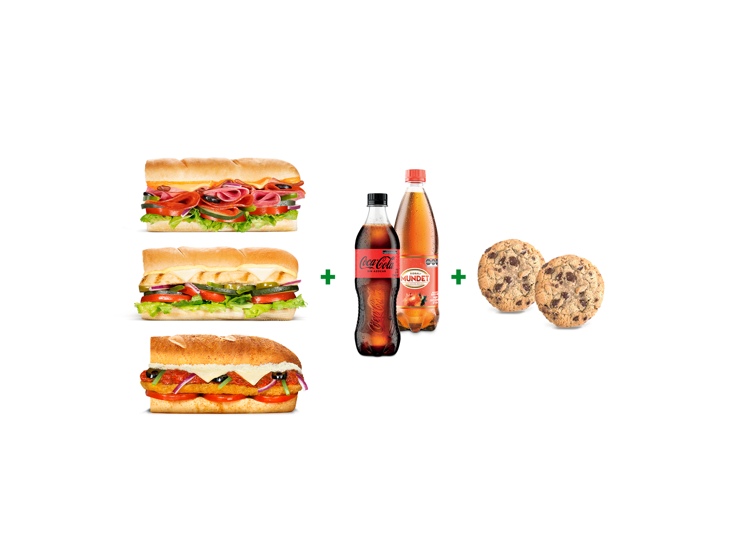 Elige dos subs entre Jamón, Pollo Milanesa o Atún.