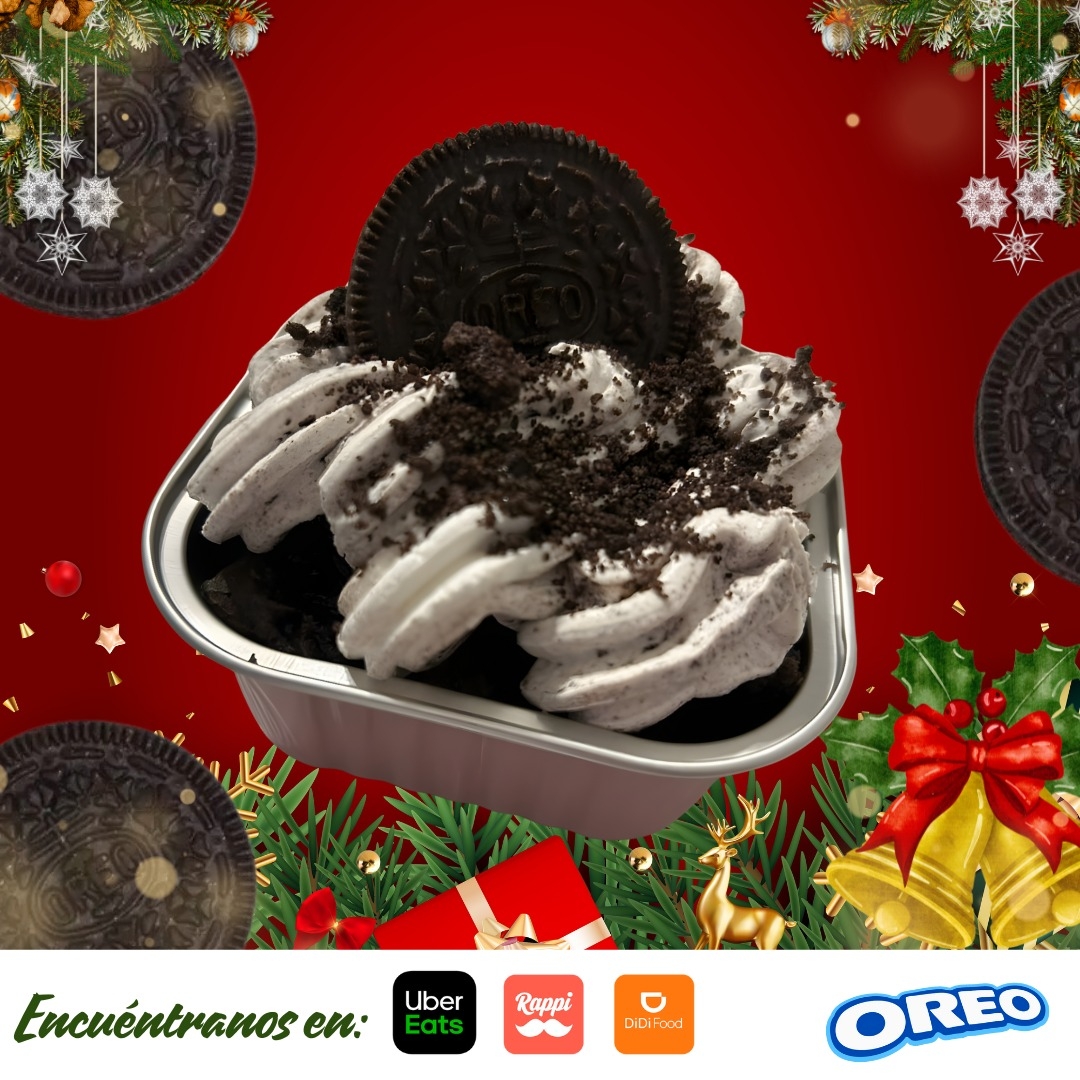 Bizcocho de Chocolate, Cobertura Queso Crema/Oreo, bañado en 3 leches.