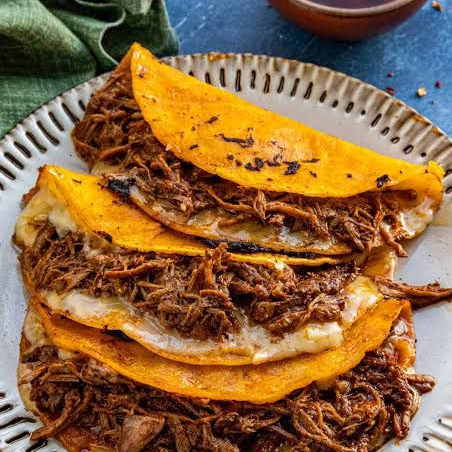 Quesadilla con carne a elegir(Borrego o Cabeza) Incluye repollo, cebolla, cilantro, limon y salsa
