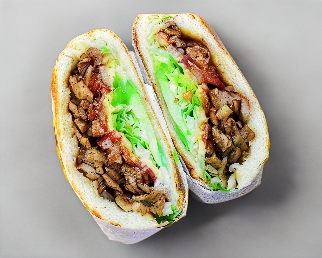 Bistec, champiñon, tocino y queso amarillo.