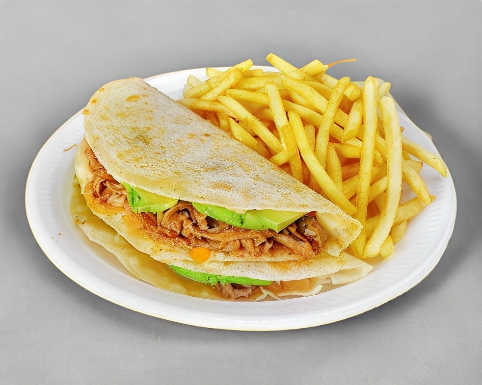 2 Quesadillas especiales ( carne de machaca, aguacate y con papas )