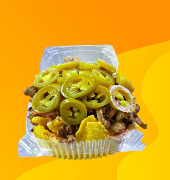 Nachos con carne y tocino.