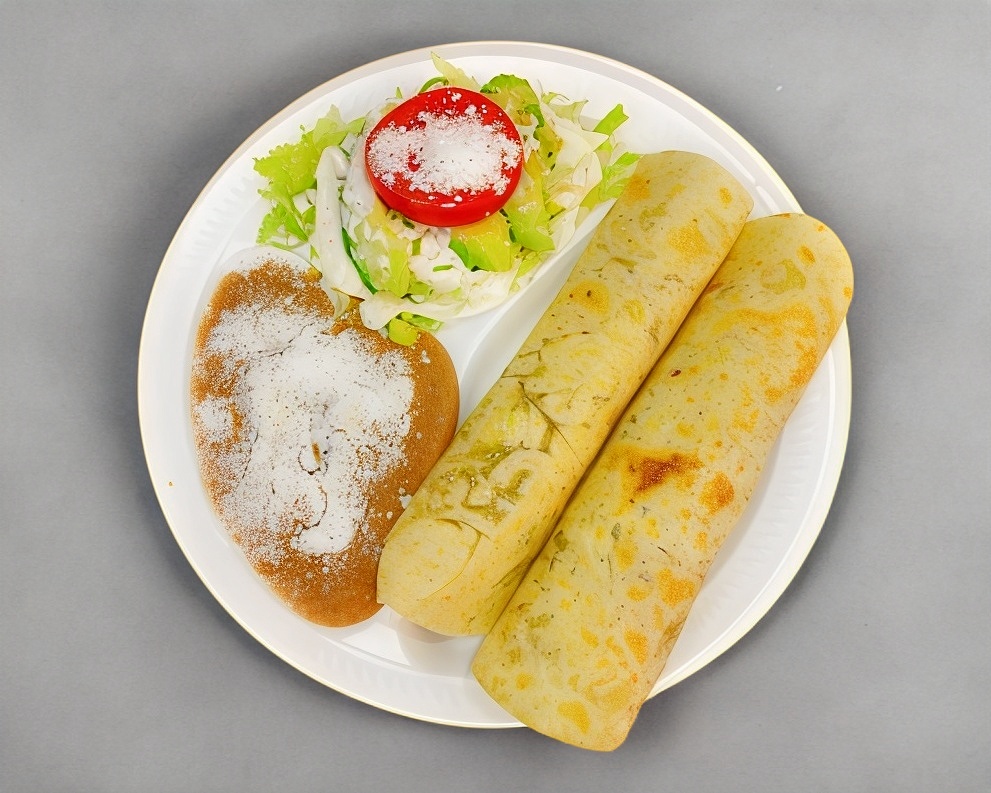 Platillo aproximadamente para dos personas Docena de Flautas con queso y crema. (salsa de chile o tomate por sepado).