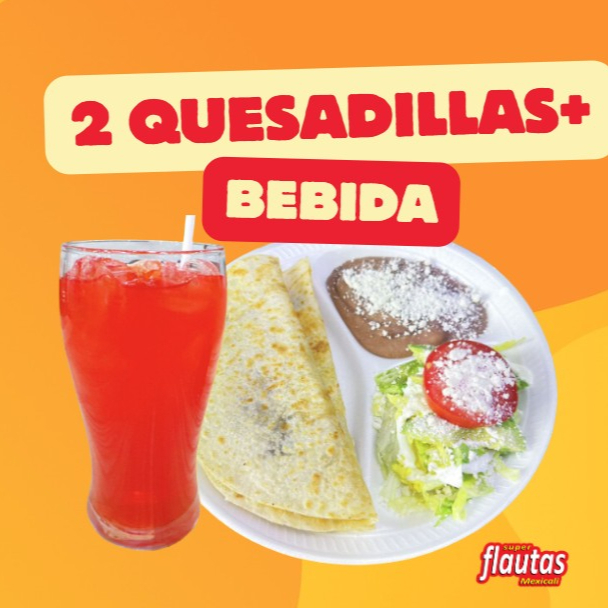 Elige Tu Bebida Chica*1 + 2 Quesadillas Especiales (Machaca)*1