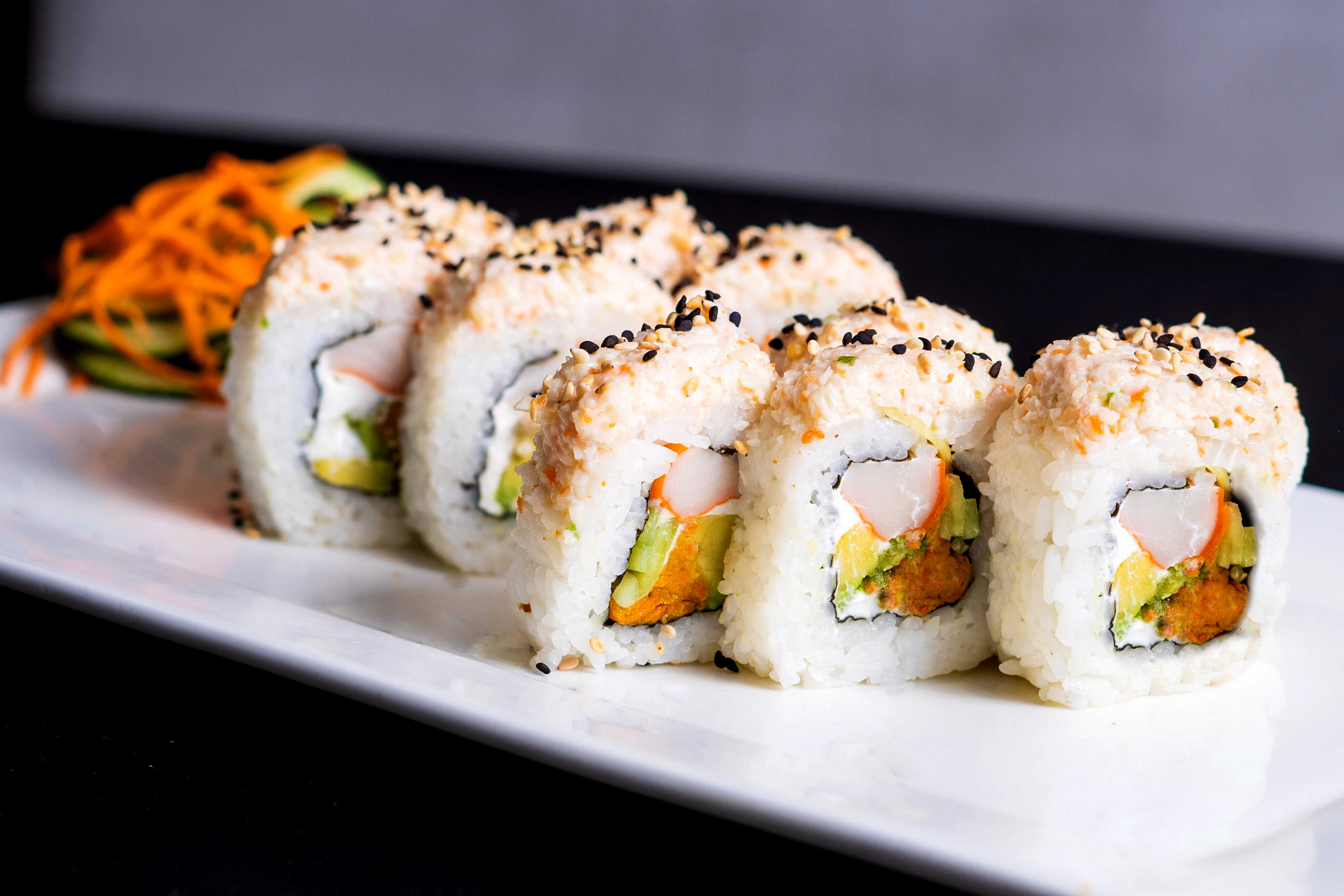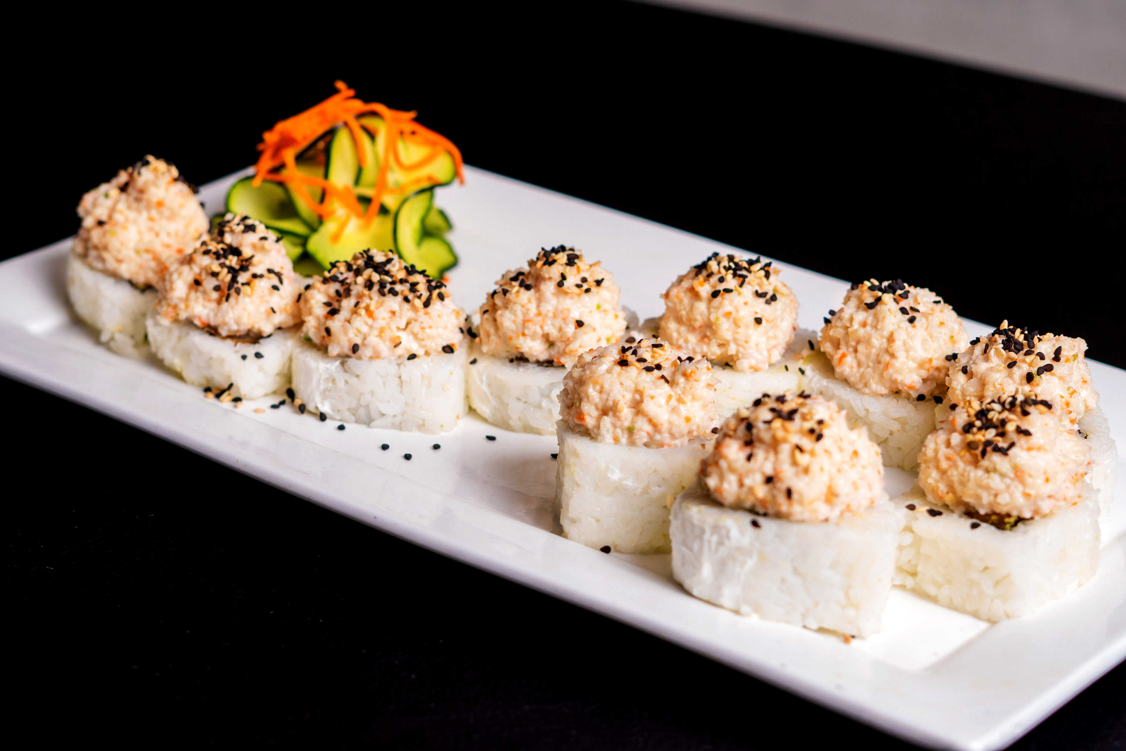 Deléitate con la exquisitez de nuestro Dragon Roll. Forrado de mango, aguacate y ajonjolí, relleno con camarón empanizado y salsa dragón. Un plato que combina la frescura con un toque de lujo.