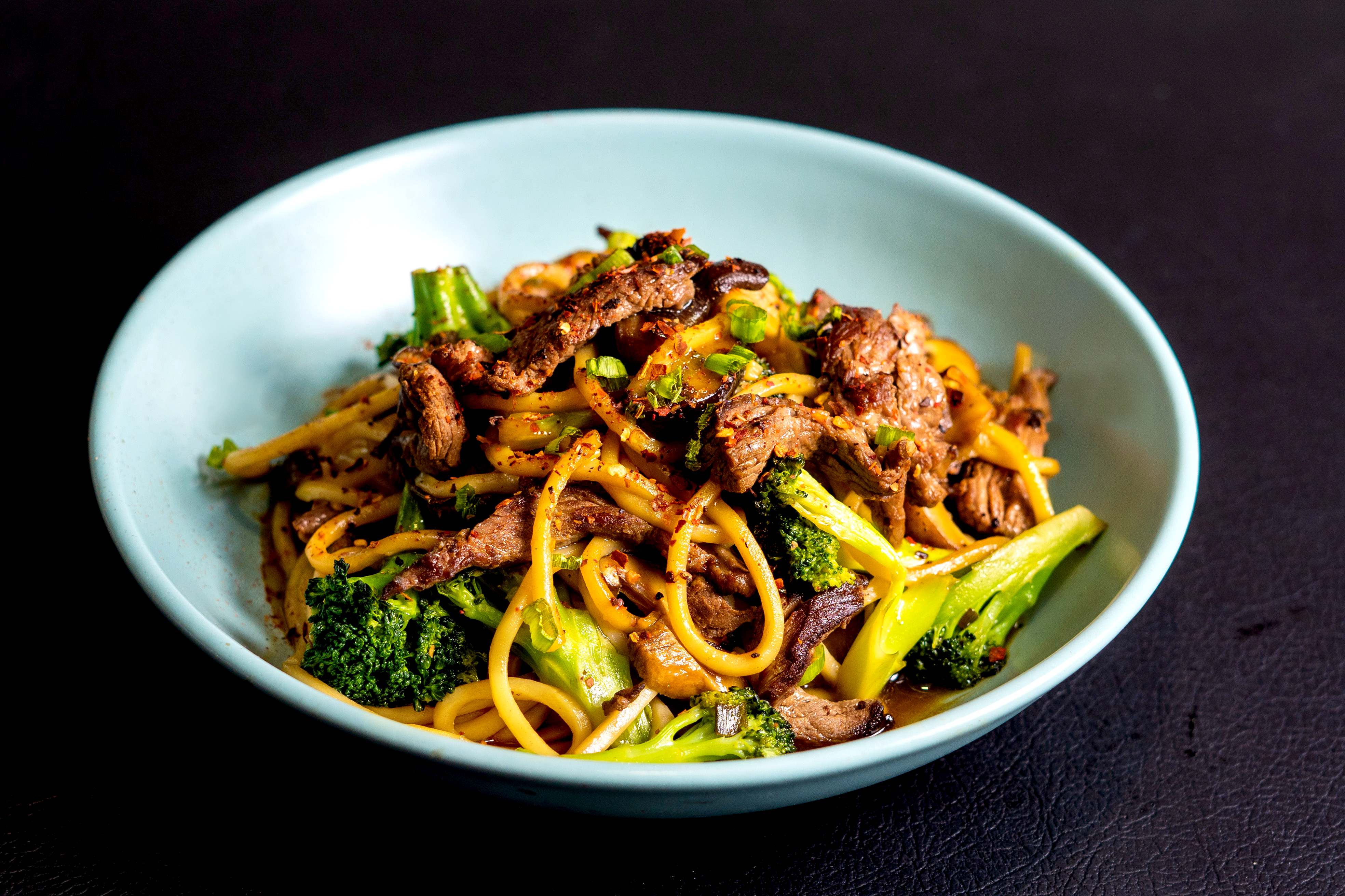 Despierta tus sentidos con nuestros Fideos Udon. Tiras de sirloin, shitake y brócoli bailan en una salsa de autor, redefiniendo la experiencia de la pasta asiática.